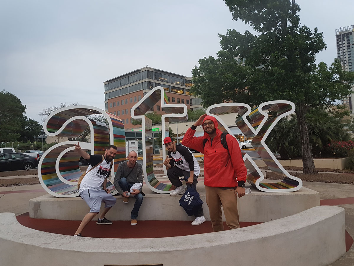 Guitz : On a aussi pu vérifier à quel point la concurrence est rude sur Austin. On nous avait prévenus qu’il y avait une quantité de concerts impressionnante chaque jour, et ce n’était pas exagéré. On peut entendre de la musique live absolument partout, tout le temps, jusque dans les supermarchés. Du coup, ça devient compliqué de remplir une salle, tellement l’offre est plus importante encore que la demande. Et le public devient un peu « consommateur ». On a pu constater par exemple que c’était un peu plus dur qu’en France pour les embarquer avec nous, mais du coup ça nous boostait encore plus et la plupart des shows se sont super bien finis, avec un public bien impliqué. On a pu vérifier que le côté visuel, avec plein de MCs sur scène, ça crée une vraie synérgie palpable, qui fonctionne des deux côtés de l’Atlantique.