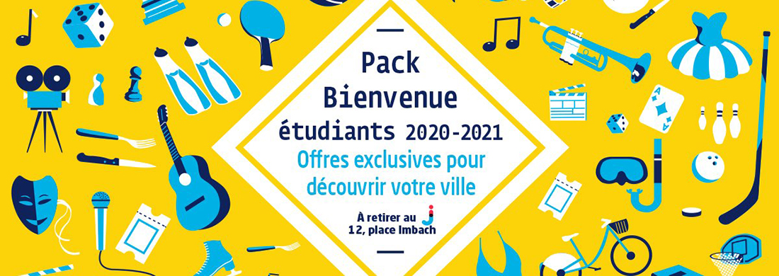 Pour souhaiter la bienvenue à ses étudiants, la Ville d’Angers leur offre un « Pack Bienvenue ». Il se présente sous forme de chéquier avec des places offertes et des réductions pour découvrir l’offre culturelle, sportive et commerciale de la ville. Une soixantaine de bons plans sont proposés pour découvrir la vie angevine, avec au total plus de 200 euros d’économies. Il est à récupérer au J, Angers connectée jeunesse (12, place Imbach) sur présentation de la carte d’étudiant.