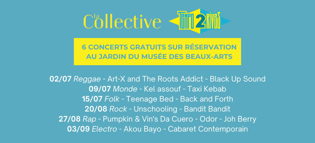 Sarah : L’an dernier, la Ville d’Angers avait demandé aux structures culturelles de l’aider à compléter sa programmation musicale d’été en cette période de COVID. Plusieurs structures avaient donc travaillé ensemble un peu dans l’urgence, ou en tout cas de manière un peu bricolée. Et nous avions alors privilégié les artistes locaux. A l’automne dernier, à l’occasion des petits déjeuners pro entre acteurs locaux qu’organise Le Chabada, a émergé l’idée de continuer ce travail collaboratif, mais de manière plus structurée. On sentait bien qu’il serait encore compliqué de proposer des choses au printemps devant un public, donc on a voulu anticiper et tout de suite réfléchir à une vraie programmation élargie pour l’été. Du coup, peu à peu, plusieurs structures ont rejoint le projet et aujourd’hui La Collective est une association, officiellement constituée en Avril dernier, qui réunit 13 associations ou entreprises culturelles locales : Paï Paï, Black Up, D3, Growl Up, Hervé Productions, La Caverne Sensorielle, Les Folies Angevines, L’Igloo, le Joker’s Pub, Orange Platine, Twin Vertigo, Tigre Noir et Le Chabada.