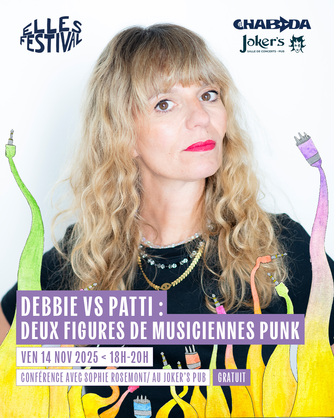 Dans le cadre du Elles Festival, nous avons invité le 14 novembre dernier la journaliste et autrice Sophie Rosemont (Rolling Stone, Les Inrocks, France Culture) à raconter ces deux grandes figures de la pop moderne que sont Debbie Harry et Patti Smith. La première chanteuse au glamour XXL du groupe Blondie qui a su injecter une dose de pop sucrée et de disco dans le punk la seconde poétesse rimbaldienne et icône punk androgyne et radicale. Ces deux pionnières vont créer à la fin des années 70 la matrice bicéphale de plusieurs générations de chanteuses et musiciennes, de Madonna à Beth Ditto, en passant par Courtney Love ou Kae Tempest.