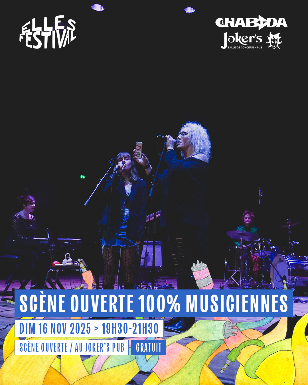Du 13 au 22 novembre 2025, nous somme revenus échanger sur l’égalité des genres et la place des femmes dans les musiques actuelles, sous des formats toujours divers et variés : concerts, table-rondes, ateliers, performances, projection de documentaire, balade, expositions…
