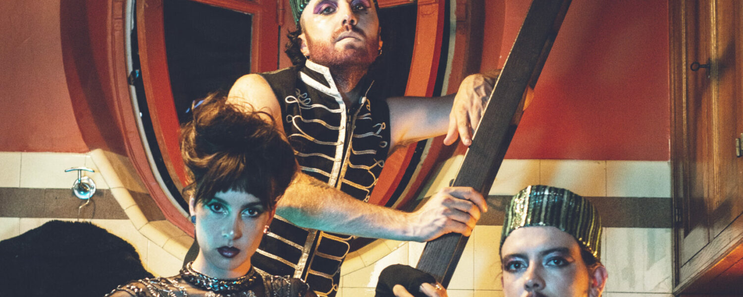 les 2 musiciens et la chanteuse sous un éclairage bleu et rougeAmeline Vildaer